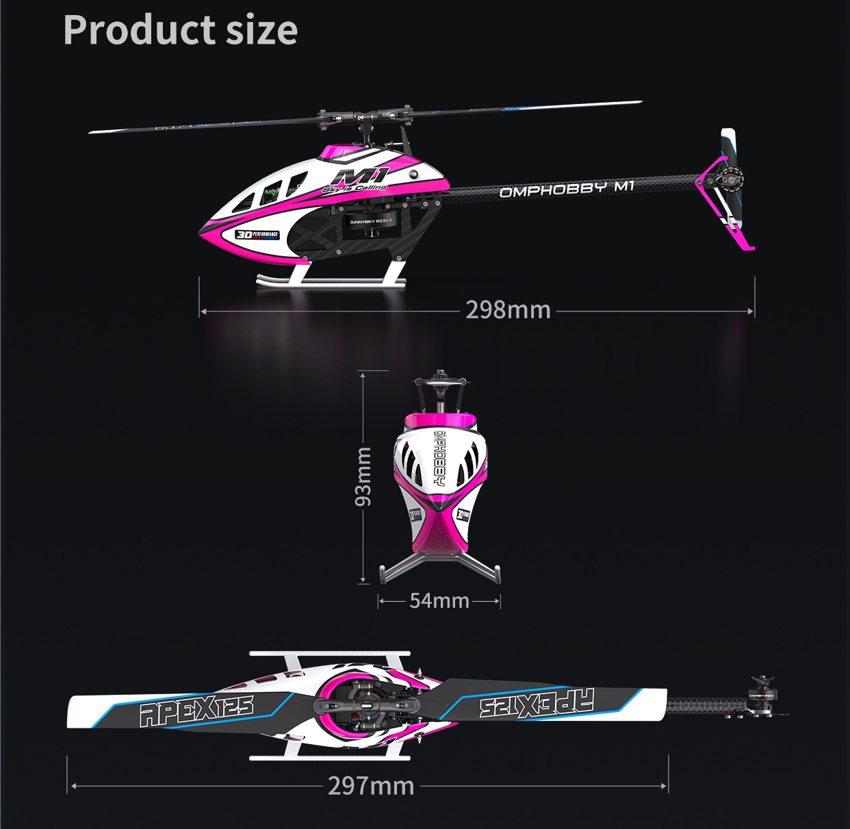 1 x M1 V3 PRO RC Helicopter 1 x OFS3+’s integrated ExpressLRS receiver. 1 x Bluetooth Module 1 x Spare Parts Bag 1 x Charging cable