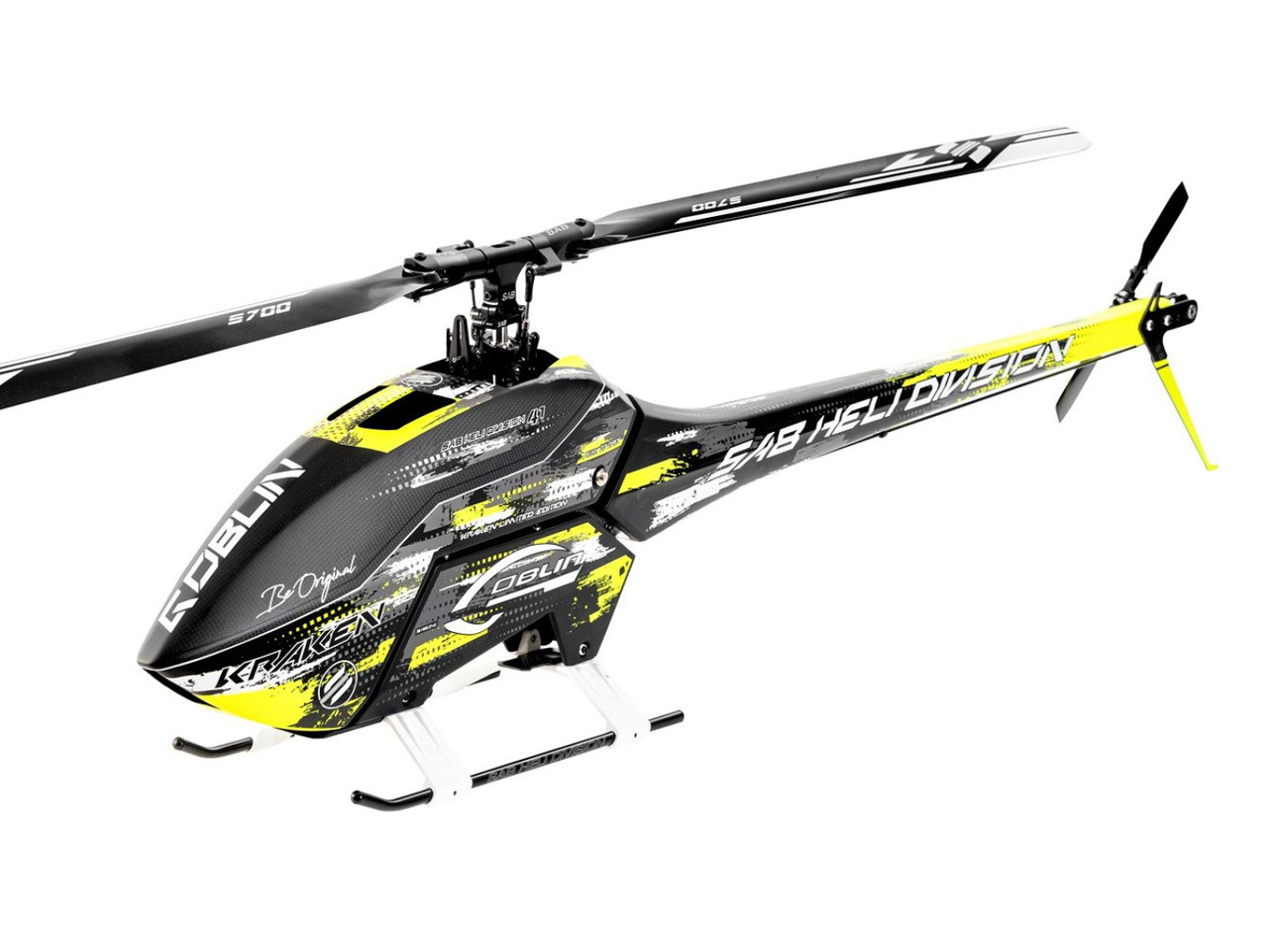 The all new Goblin Kraken 700 S takes the already well proven Kraken 700 design and improves upon it. The model features the Raw 700 transmission box which includes the new and improved helical gears. This makes the helicopter smoother and lighter! The kit also includes the brand new and incredible S-Line Main blades from SAB, further improving the flight performance!