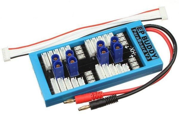 This device is to be used with a balance charger to simultaneously charge multiple lithium batteries in parallel. By this method you can significantly save time on battery charge process.