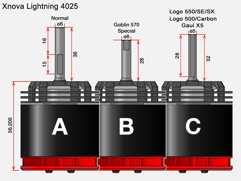 Xnova brushless high performance outrunner motor for 550-620 size helicopters for sport flying on 8s-10s or extreme flying on 10-12s. Extremely powerful motor for the Gaui X5, OXY 5, or other similar sized models that use a 6mm X 36mm shaft for pinion.